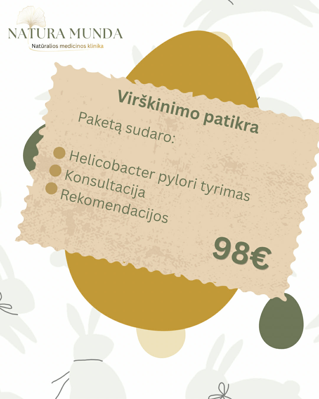 Įeina: – Helicobacter pylori tyrimas – Konsultacija su specialistu – Individualios rekomendacijos ![]()